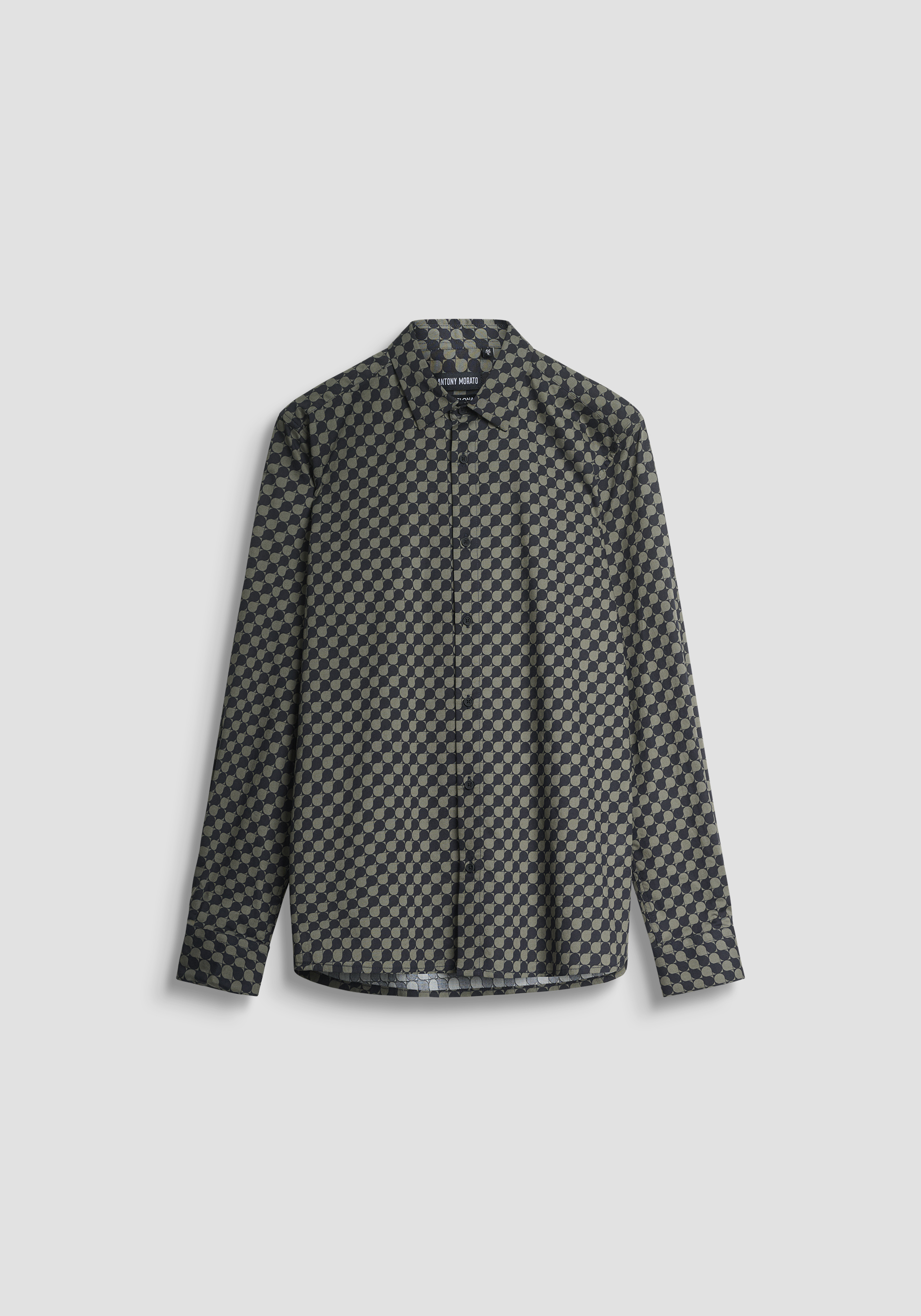 "BARCELONA" REGULAR STRAIGHT FIT COTTON BLEND SHIRT IN GEOMETRIC PRINT