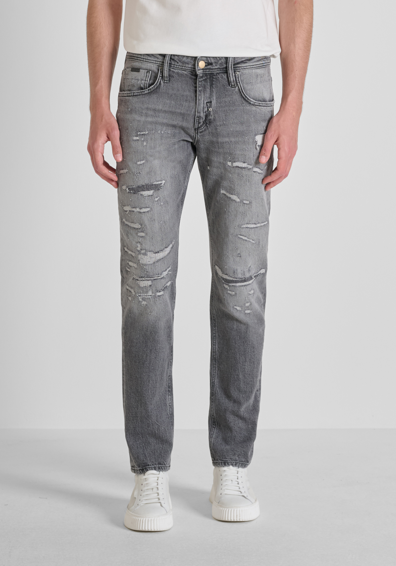 "KURT" COMFORT TAPERED FIT JEANS IN BLACK SUPER DESTROYED DENIM